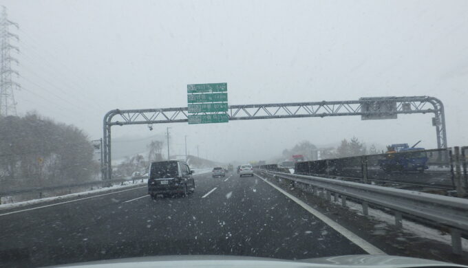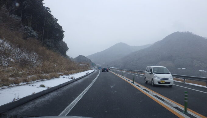 9:10出発し東名阪に入り桑名あたりから雪が降ってくる
