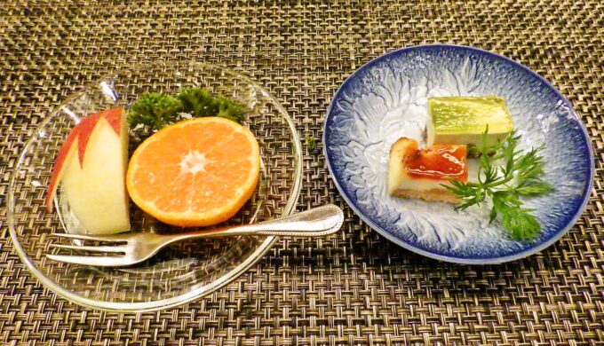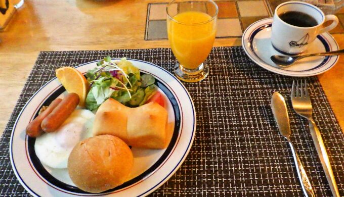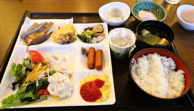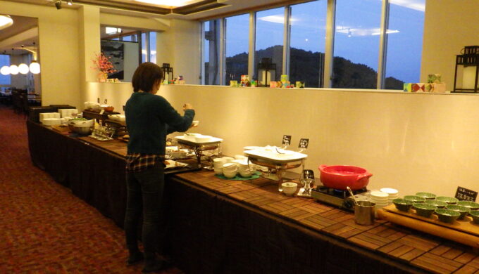 朝ごはんはバイキングだが、他にお客さんはおらず