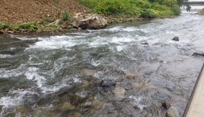 もうちょっと時季が遅ければサケ・マスの遡上が見られるのだが、あいにく今日は皆無・・・残念