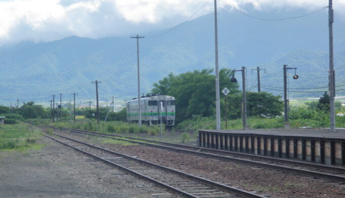 ありがちな無人駅だが背景の富良野西岳とのインパクトは強い